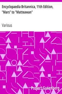 "Encyclopaedia Britannica, 11th Edition, 'Mars' to 'Matteawan'" by Various is a scientific publication written in the early 20th century. This volume is part of the comprehensive 11th edition of the Encyclopaedia Britannica and aims to provide detailed information on a wide range of topics, from astronomy and geography to notable historical figures...